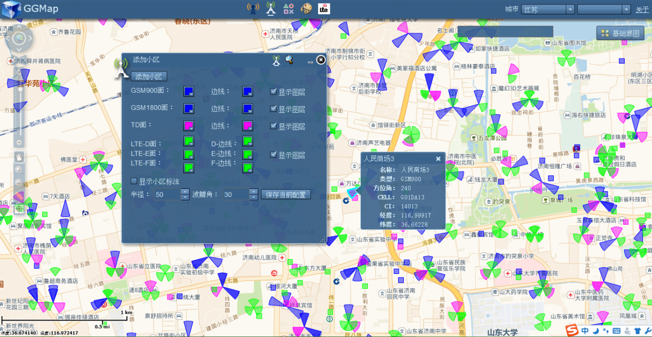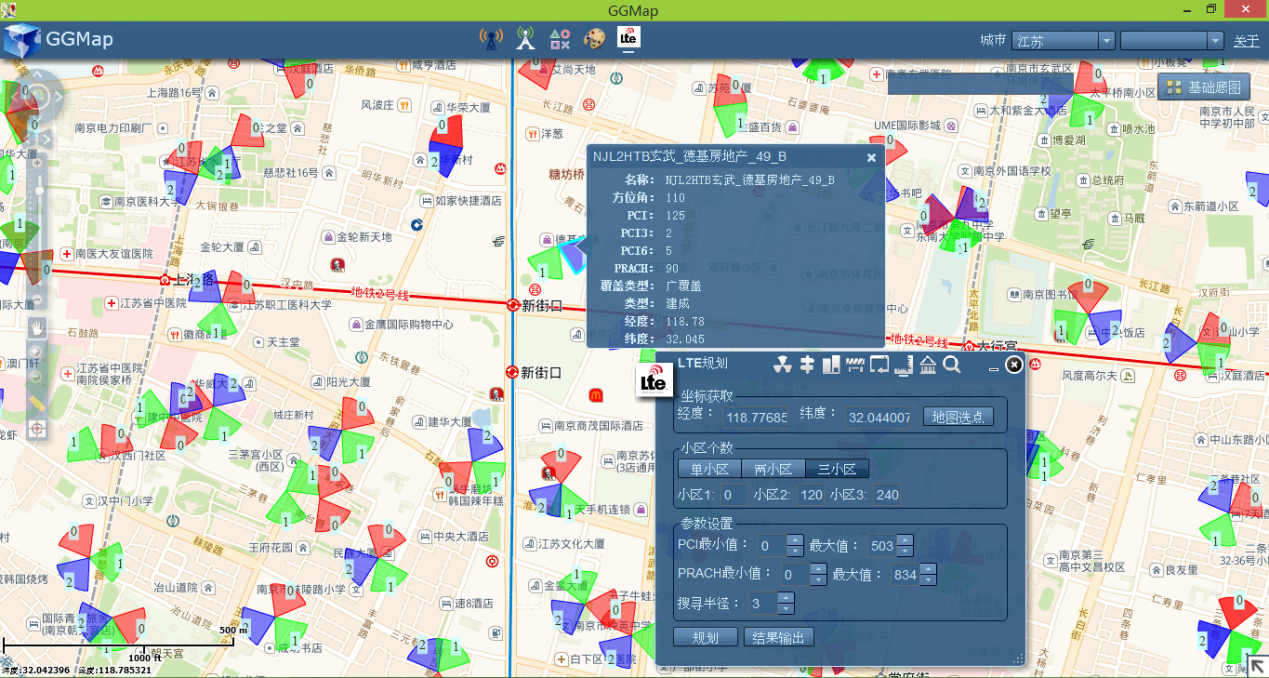 GGMap將無線通訊小區(qū)無偏差的投影到在線地圖(高德街道、高德影像、谷歌街道、谷歌影像),并能讓用戶自定義展示樣式。同時還支持 LTE-PCI規(guī)劃、路測數(shù)據(jù)地圖展示、地圖標(biāo)會功能。