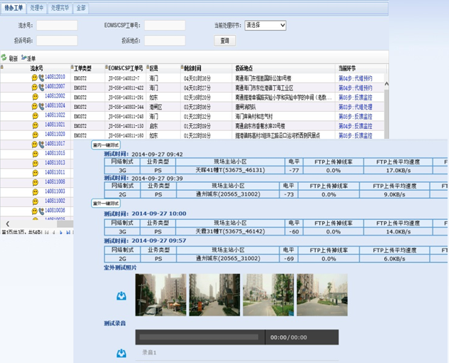 平臺側(cè)采用企業(yè)級標(biāo)準(zhǔn)的J2EE平臺,瀏覽器訪問,還有比這更方便的嗎?后臺人員分角色處理投訴工單,一步一步向前走(當(dāng)然也可回退哦),達(dá)到工單流程化處理,再也亂不了啦;全網(wǎng)工參、規(guī)劃站、投訴點(diǎn)信息都可以在GIS上關(guān)聯(lián)展示,還有關(guān)鍵KPI和告警信息實(shí)時(shí)查詢,全面協(xié)助,真的是要啥有啥,再發(fā)現(xiàn)不了問題,您找我!最后一個(gè)重磅炸彈:用戶投訴號碼信令信息追溯分析,更深入地解決投訴問題,VIP投訴也是小CASE了。