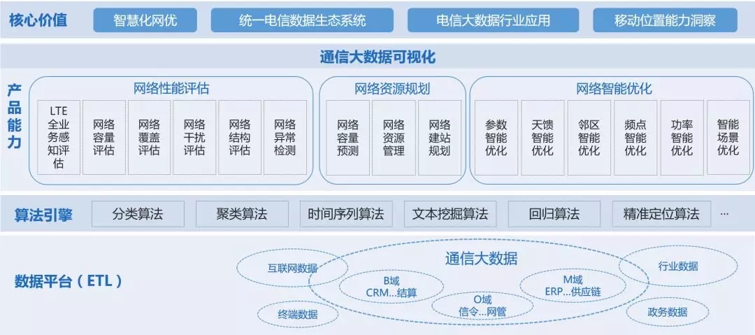 人工智能、大數(shù)據(jù)和物聯(lián)網(wǎng)技術(shù),以“Deeplan”作為品牌,華蘇出了一系列智能化、自動(dòng)化的優(yōu)化 系統(tǒng),必將點(diǎn)燃傳統(tǒng)網(wǎng)優(yōu)浴火重生的希望。Deeplan平臺(tái)架構(gòu)中基于集中評(píng)估,集中分析,集中優(yōu)化,分場(chǎng)景優(yōu)化生產(chǎn)體系的劃分,鍛造了七大類經(jīng)典應(yīng)用(感知優(yōu)化、容量規(guī)劃、智能優(yōu)化、場(chǎng)景優(yōu)化、覆蓋分析、干擾分析和優(yōu)化工具),平臺(tái)技術(shù)架構(gòu)采用分層設(shè)計(jì),插件化開(kāi)發(fā),模塊化集成,可云化部署,整個(gè)架構(gòu)靈活可靠、可擴(kuò)展,Deeplan平臺(tái)可以開(kāi)發(fā)各種應(yīng)用,支持 智能網(wǎng)絡(luò)運(yùn)維、精確市場(chǎng)營(yíng)銷、大數(shù)據(jù)行業(yè)應(yīng)用等。