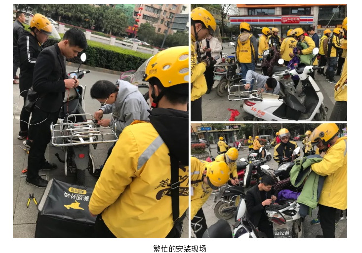 2019年3月25日,華蘇科技 旗下“螞蟻管車”品牌攜手成都美團(tuán)外賣中心,在成都市龍泉區(qū)天立廣場(chǎng)舉行了集中安裝儀式。短短的一個(gè)小時(shí)內(nèi),調(diào)配到現(xiàn)場(chǎng)的100臺(tái)“螞蟻管車”防盜終端被美團(tuán)外賣小哥們一領(lǐng)而光,幾個(gè)安裝師傅同時(shí)開(kāi)工,馬不停蹄地完成了設(shè)備安裝、激活、綁定工作。