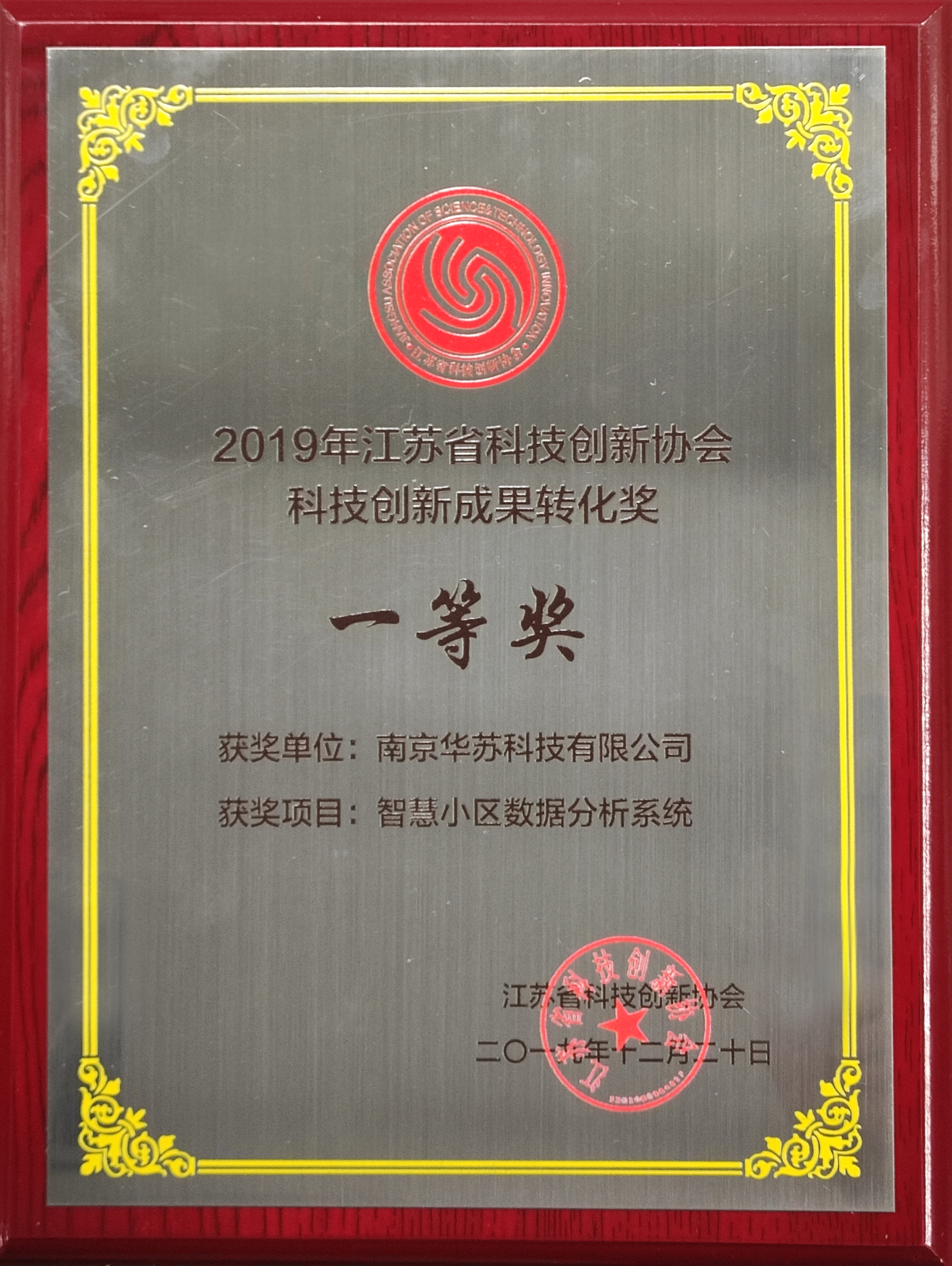 華蘇“智慧小區(qū)數(shù)據(jù)分析系統(tǒng)”榮獲2019年江蘇省科技創(chuàng)新成果轉(zhuǎn)化獎(jiǎng)一等獎(jiǎng)