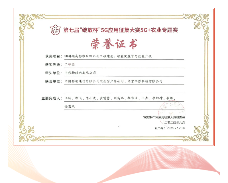 合力創(chuàng)佳績,華蘇科技榮獲第七屆“綻放杯”5G應(yīng)用征集大賽5G+農(nóng)業(yè)專題賽二等獎