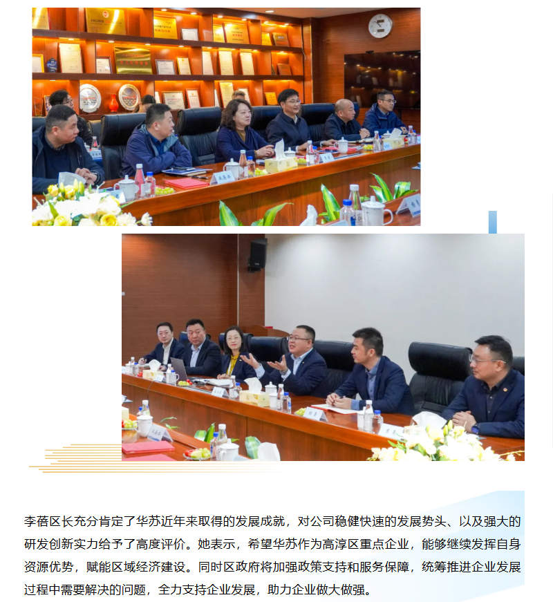 3月3日,高淳區(qū)委副書記、區(qū)長李蓓一行蒞臨華蘇科技 開展重點企業(yè)調研工作,區(qū)政府辦、區(qū)發(fā)改委、區(qū)科技局等主要負責人陪同調研。
