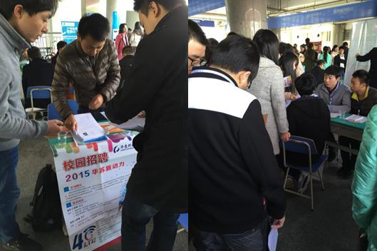 招聘會(huì)現(xiàn)場(chǎng),人頭攢動(dòng),氣氛熱烈,華蘇科技的招聘負(fù)責(zé)人積極介紹了本公司的整體情況、發(fā)展歷程以及目前各運(yùn)營(yíng)商大規(guī)模發(fā)展4G和通信人才缺口較大的現(xiàn)狀,除此之外,還特別指出了華蘇“責(zé)任、誠(chéng)信、專業(yè)、專注”的企業(yè)精神和“公平激勵(lì)、共同成長(zhǎng)”的員工理念,引起了廣大學(xué)院學(xué)子的濃厚興趣。同學(xué)們也針對(duì)工作內(nèi)容、工作方式和工作崗位對(duì)專業(yè)的要求等進(jìn)行了詳細(xì)的咨詢和提問(wèn)并都得到了相對(duì)滿意的回答。