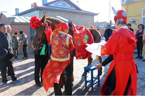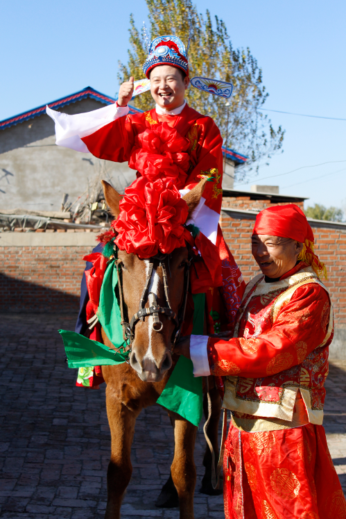 與常見的西式婚禮不同,身為華蘇人的新郎官?zèng)Q定用更喜慶、更熱鬧、更有場(chǎng)面的中式婚禮令他的心中所愛終身難忘,不要婚車,要高頭大馬;不要婚紗,要紅火新衣。騎在馬上,是不是有一種考種狀元的感覺呢?