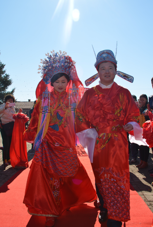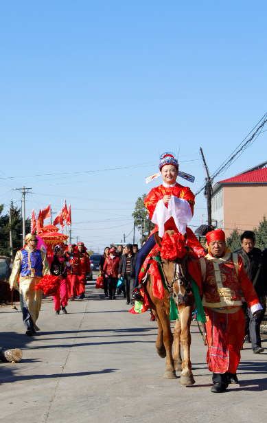 一路上鑼鼓聲聲響,眾人喜洋洋,嗩吶的旋律回蕩在空中,吸引了周邊人驚羨的目光。