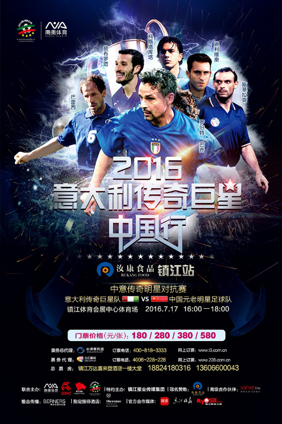 近日,“2016意大利傳奇巨星中國行”于江蘇鎮(zhèn)江正式開啟行程。羅伯特·巴喬、弗朗哥·巴雷西、保羅·羅西、薩爾瓦托雷·斯基拉奇等20多位意大利傳奇巨星親臨現(xiàn)場。中國元老明星足球隊的范志毅、馬明宇、黎兵、彭偉國等昔日國足主力也來到現(xiàn)場,喚起了現(xiàn)場球迷對這經(jīng)典一代的回憶。一場來自中意明星球員腳下的爭奪戰(zhàn)一觸即發(fā)!