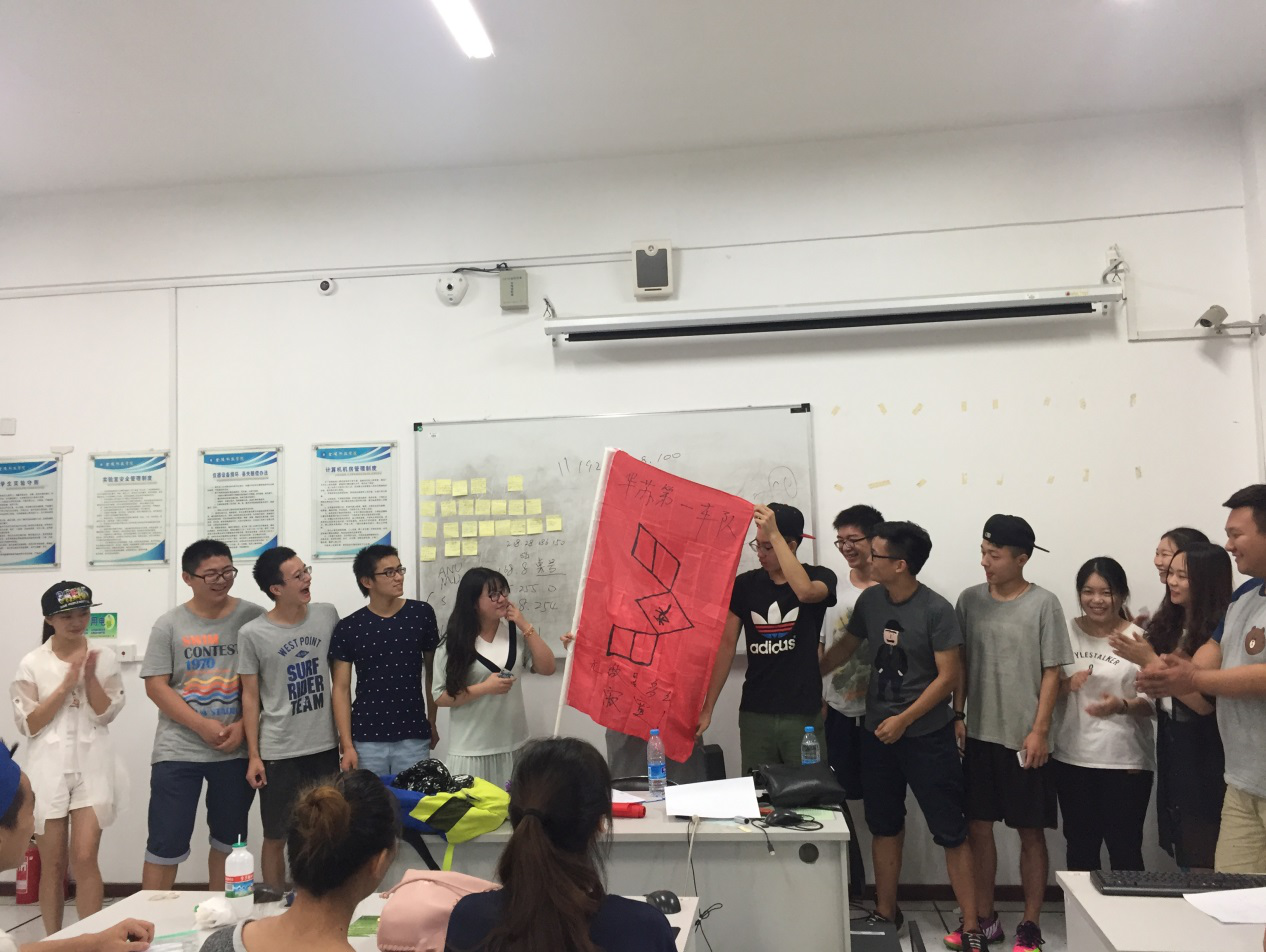 活動(dòng)伊始,大家自主分組,并由團(tuán)隊(duì)成員集思廣益確定小組的隊(duì)名、隊(duì)旗及口號。在確定和完成制作后,各組隊(duì)長帶領(lǐng)小組隊(duì)員進(jìn)行風(fēng)采展示,簡單的圖案中卻蘊(yùn)藏著深刻的含義,大家奇思妙想的創(chuàng)意,真是讓人應(yīng)接不暇!