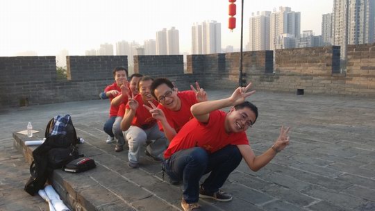 10月26日下午,本期“千人?狼”培訓組織開展了“西安城墻戶外拓展活動”?;顒臃譃椤氨┳郀幮邸⒐聧u求生”等環(huán)節(jié),全體參訓員工組成四支英雄的團隊,通過奮力拚搏,最終“西北狼”隊獲得全勝,贏得BOOS親筆簽名的籃球。